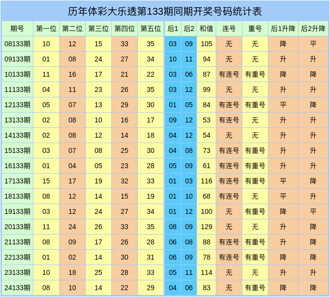 潘超大乐透历年同期奖号数据分析