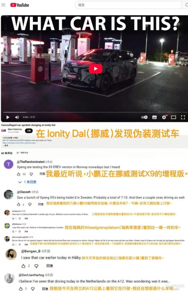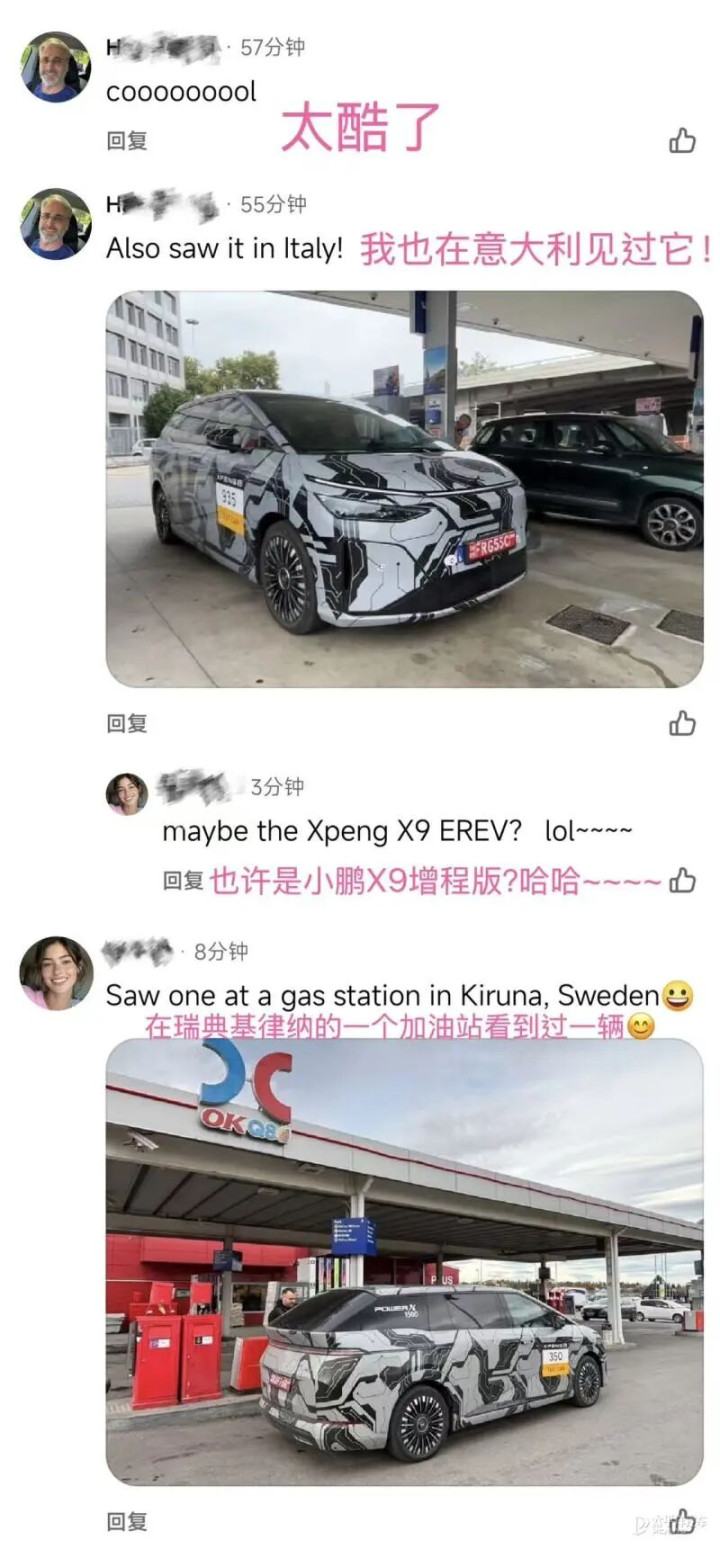 实际上前段时间小鹏X9增程版在海外路试的谍照就引发了不少关注。根据照片的显示,小鹏X9增程版已经在德国、意大利、瑞典、挪威等欧洲多地测试