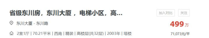 而板块里的电梯楼东川大厦,价格就更坚挺了,单价最高能卖到7万/平;整个小区成交均价同比也涨了4.4%。