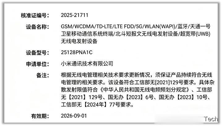 中国无线电认证数据库显示,型号为25128PNA1C的设备已获得核准。这并非普通版本,而是支持天通一号和北斗系统的卫星通信版本。用户可据此自主选择拨打卫星电话或收发卫星消息。认证信息中还提及对UWB(超宽带)技术的支持,这将使设备能够同时与多个终端保持无缝连接。