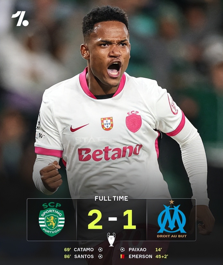 凭借桑托斯在第86分钟的绝杀进球,葡体最终在主场2-1惊险击败10人迎战的马赛取得本场胜利。