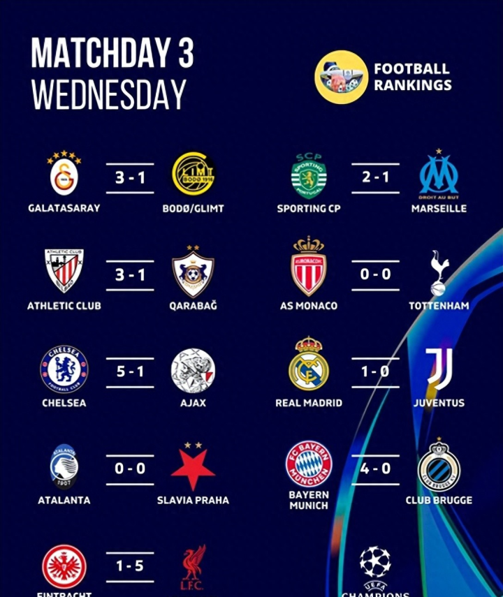 25/26赛季欧冠联赛阶段第3轮的第二个比赛日的9场较量全部结束。而在第二个比赛日,比赛的节奏未能再延续首个比赛日的进球如麻的情形,更多场次的比分相对接近的结果,也体现了第二个比赛日的激烈和胶着。