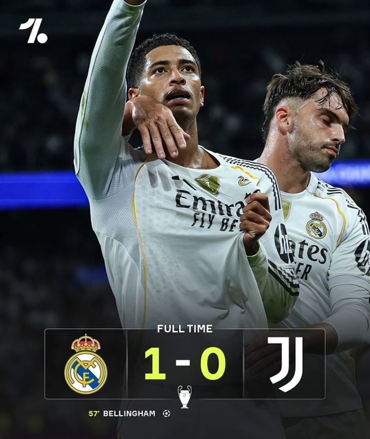 尽管一场预想中的进球大战未能到来,但坐镇伯纳乌的皇马,还是凭借贝林厄姆在第57分钟的进球,主场1-0小胜尤文而拿到了本场比赛的最终胜利。