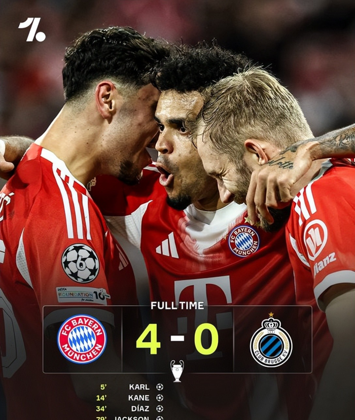 最终,拜仁以主场4球的优势轻取对手的同时,也拿到了本赛季欧冠联赛阶段的3连胜。