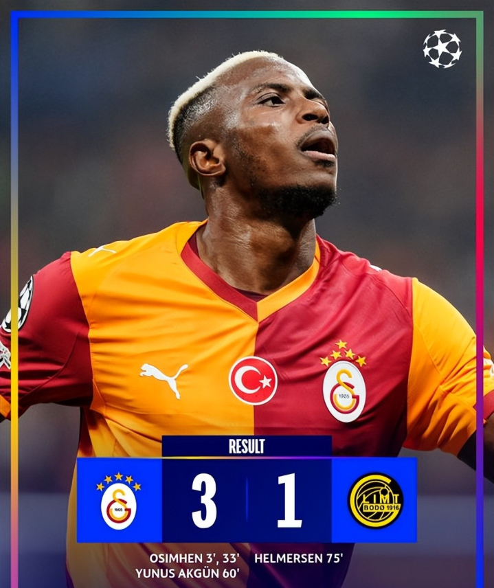 依靠奥斯梅恩的半场梅开二度和阿克金的进球,尽管赫尔默森在第75分钟扳回一球,但土超球队依旧凭借前60分钟的3粒进球,最终主场3-1击败对手全取三分。